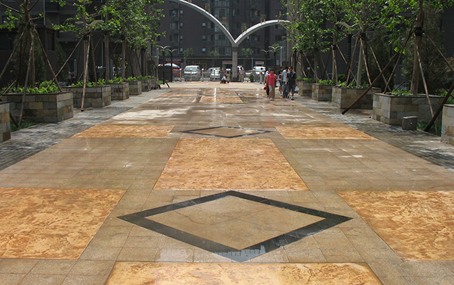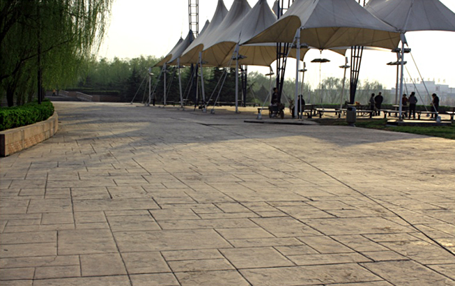 園、大型廣場以及室內外主題裝飾等多種景觀環(huán)境中都得到了充分的體現(xiàn),目前擁有高承載透水藝術地坪、彩色壓印藝術地